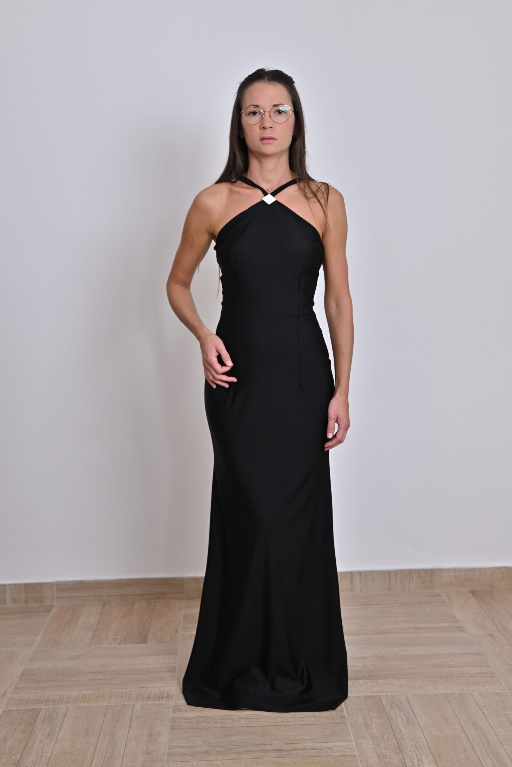 Duga crna haljina sa mašnom