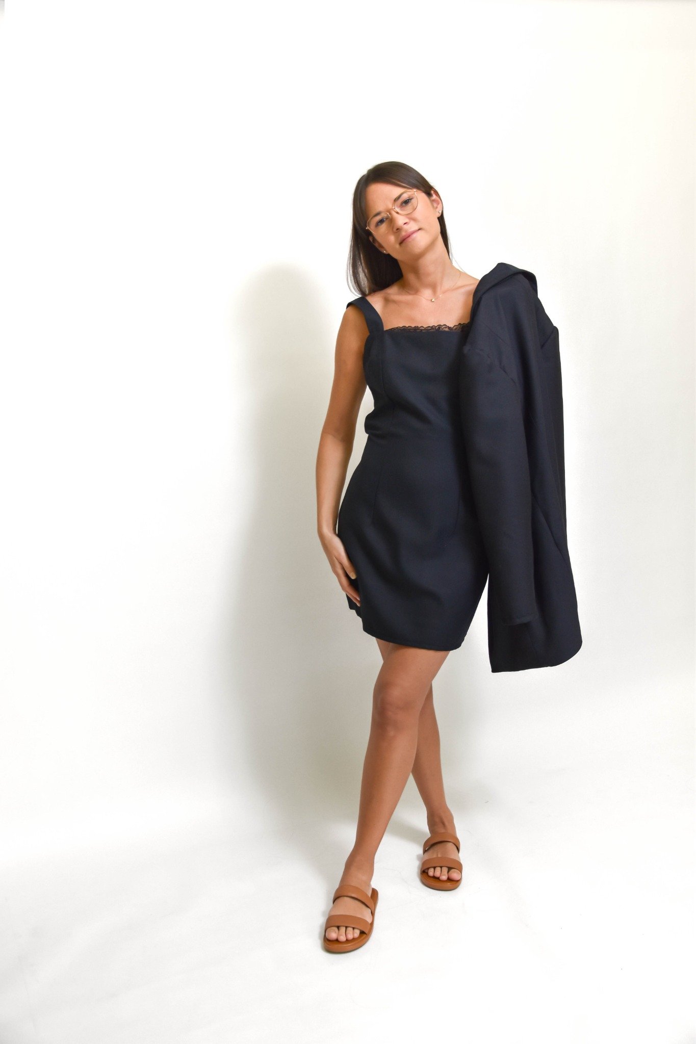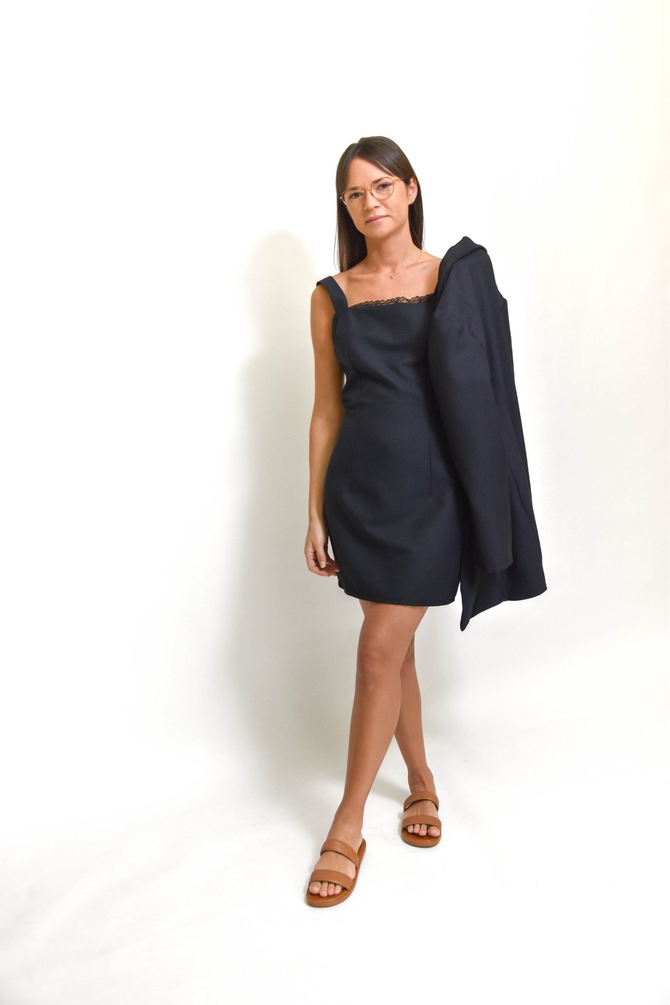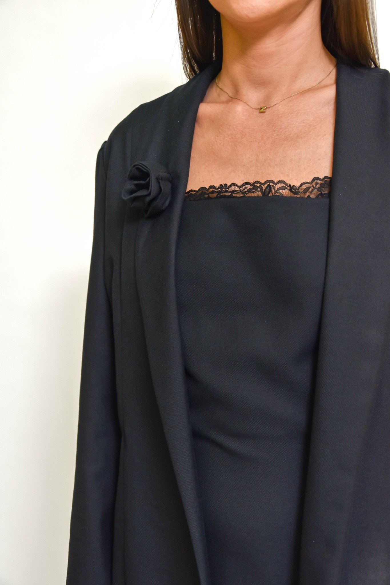 Komplet sako i haljina, šiveno od štofa bez elastina. Na sakou se nalazi ruža koja daje moderan izgled. Sako I haljina se mogu nositi odvojeno u različitim odevnim kombinacijama. Na haljini je našivena čipka koja daje posebnu dozu ženstvenosti. Komplet se može šiti po meri.
