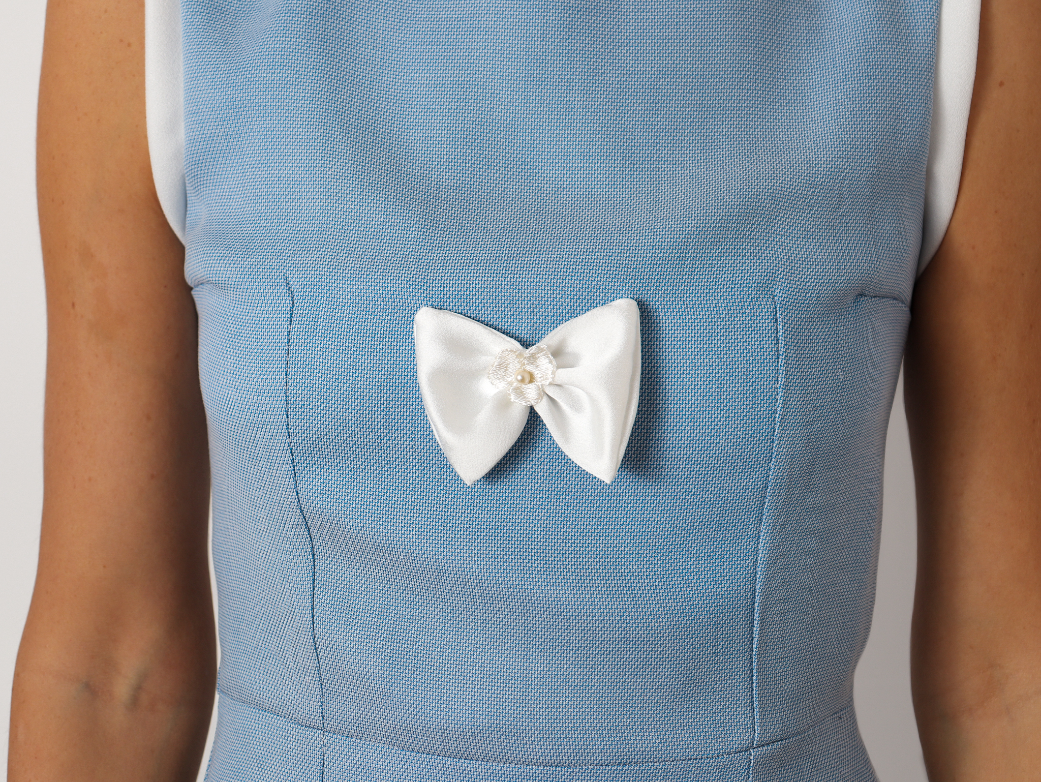 Plava haljina bez rukava, šivena od kvalitetnog italijanskog štofa. Karneri na orukavlju I donjem rubu daju haljini ženstven i elegantan izgled.